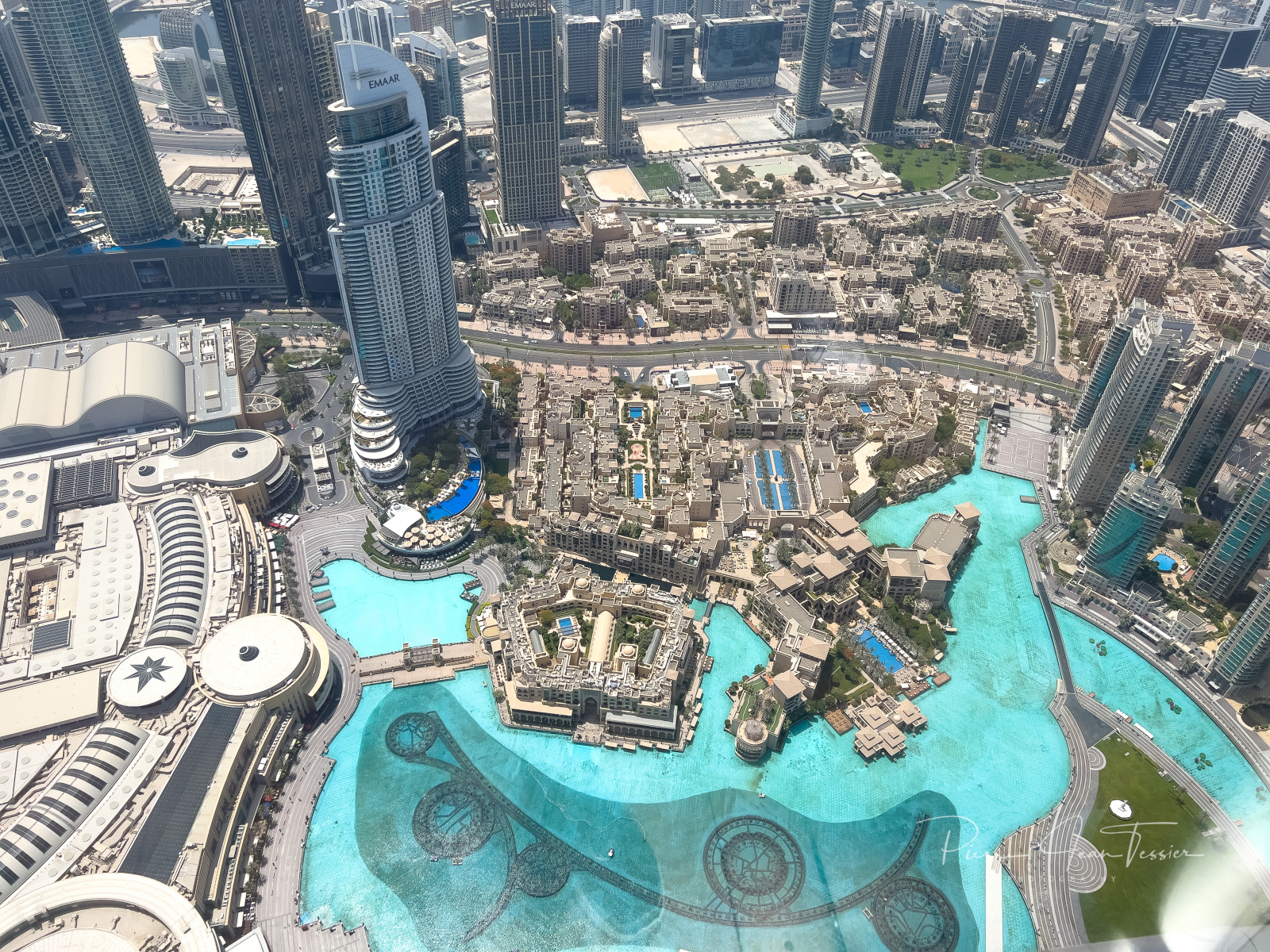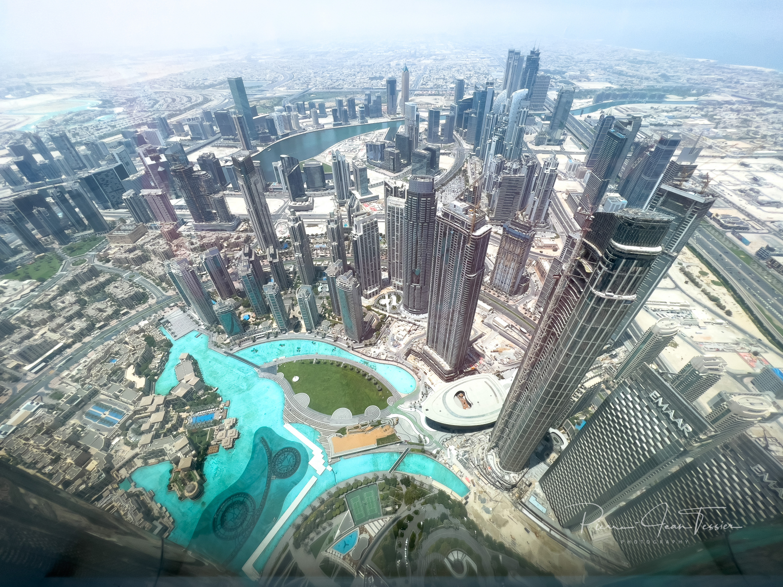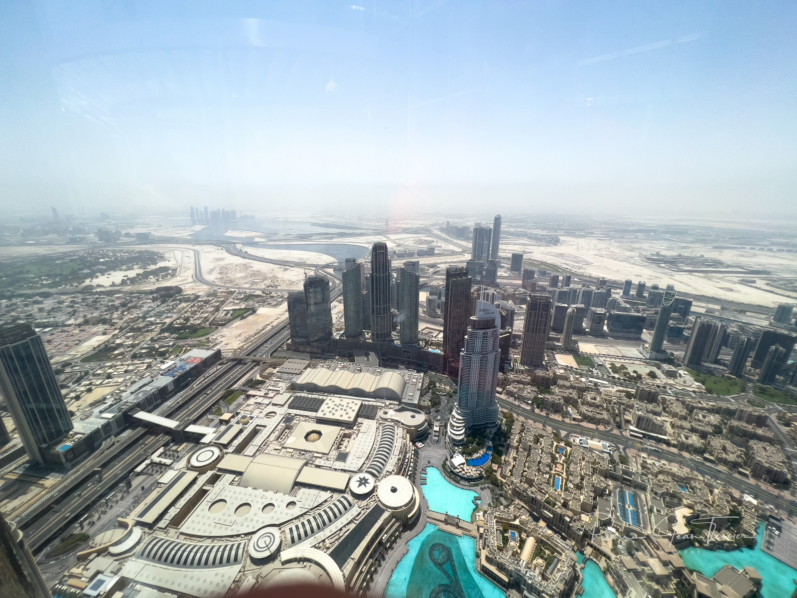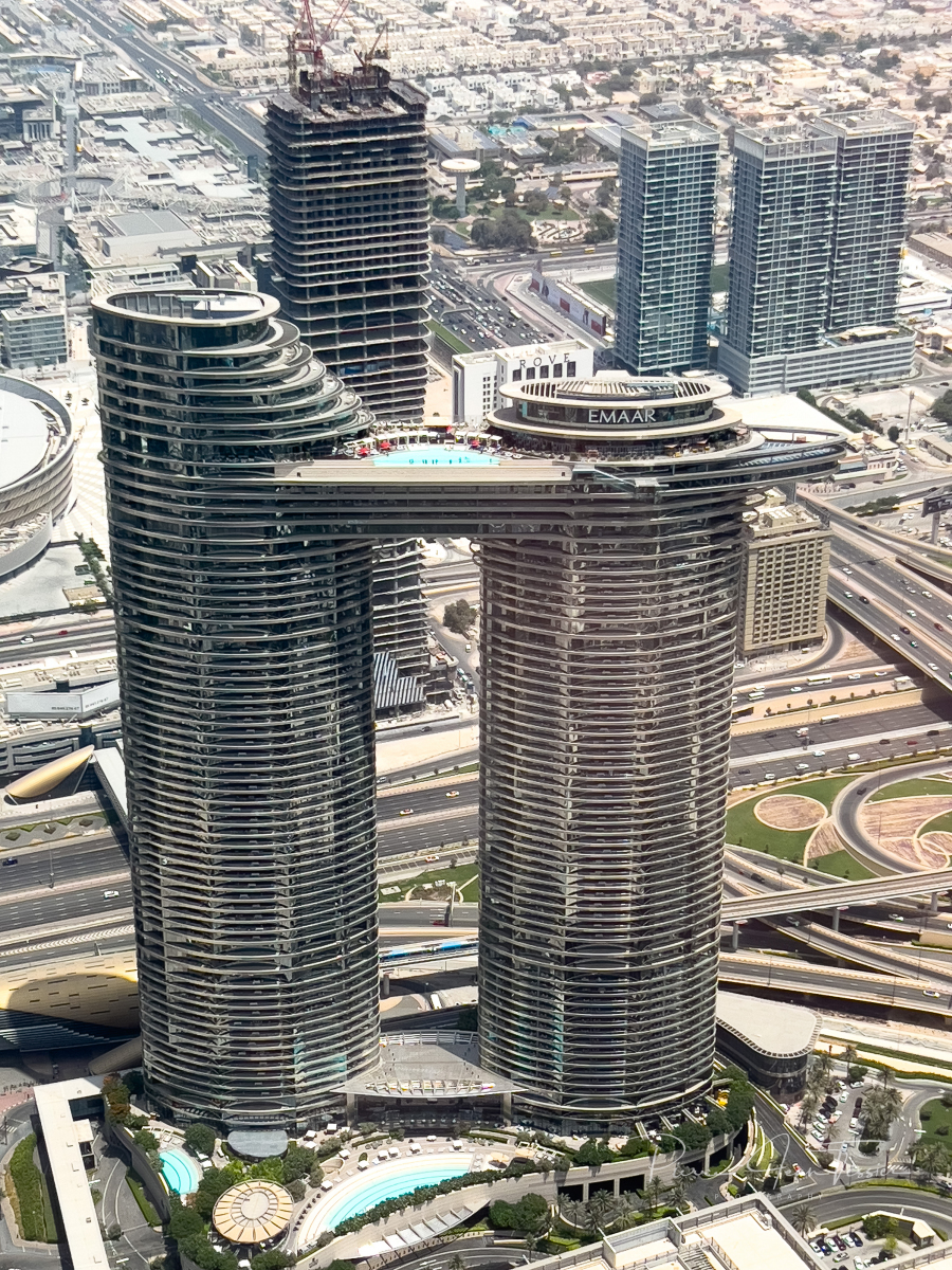 Un ascenceur ultra rapide nous amène au 124e étage. Les oreilles commencent à nous boucher qu’au 50ième étage. Des vidéos apparaissent à 360 degrés sur les parois de l’ascenseur. Des images de l’espace apparaissent juste avant de débarquer à l’observatoire. Ce dernier est situé en grnde partie à l’extérieur de la tour. On a le soleil sur la tête et on sent le vent. Au départ, fiston et maman se tiennent loin des parois du mur. Il trippent pas fort fort dans les hauteurs, mais on vient ici juste une fois dans notre vie. Il faut pas penser à ce qui pourrait arriver si la tour s’écroulait…y’aurait pas de suite de ce blog 🤣🤣😜. On a pu apercevoir des laveurs de vitre attachés à des câbles, les pieds dans le vide. Chacun sa job mettons.