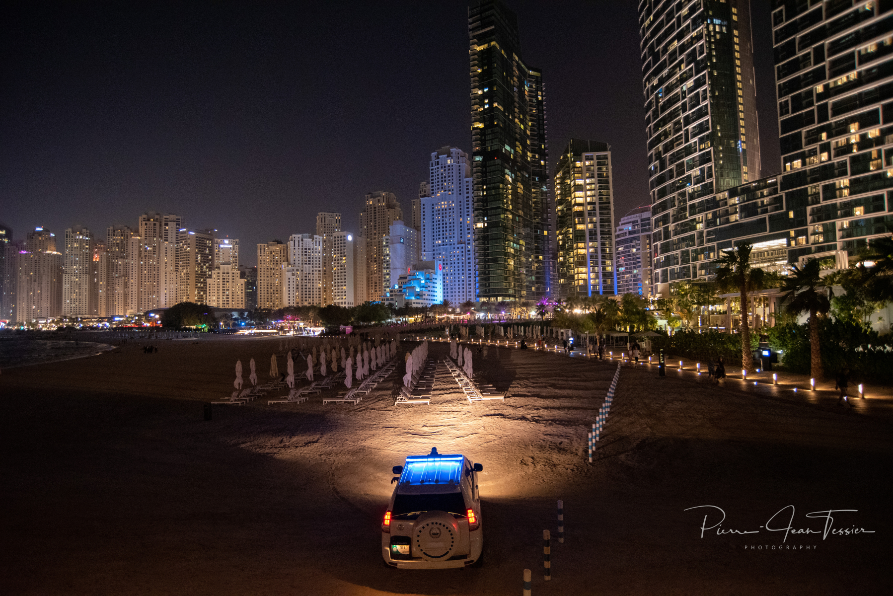 Nous arrêtons prendre en photo l’avant de l’hôtel Jumeirah Al Qasr qui est gardé par des agents de sécurité. L’accès est interdit mais l’agent de sécurité nous laisse prendre quelques photos. Un petit 2400 Dirham la nuit pour cet hôtel de luxe.