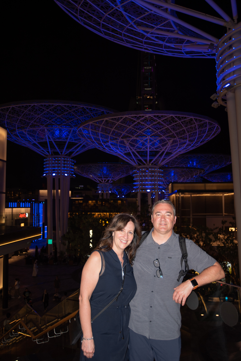 Le coup de coeur de Claudie est la table à manger intéractive avec les écrans tactiles qui vous montrent les menus. Lorsque vous cliquez sur un plat, les ingrédients contenus dans ce plat apparaissent et le résultat final également. Vous savez donc exactement ce que vous allez manger. Regarder la vidéo pour avoir une idée.Nous revenons par la suite dans le secteur du Madinat (hôtels et plage). Le paysage est magnifique. Fiston nous demande pourquoi nous ne sommes pas venus ici. Une petite recherche sur internet nous indique qu’il en coûte 3000 Dirham (1000$ canadien) la nuit. Il comprend maintenant pourquoi nous sommes dans le secteur de la marina en appartement 😂. Nous arrêtons prendre un petit rafraichissement à l’air climatisé et en profitons pour prendre un petit sandwich et visiter l’intérieur et les magasins typiques.