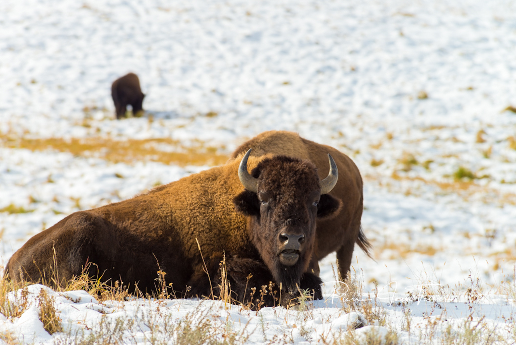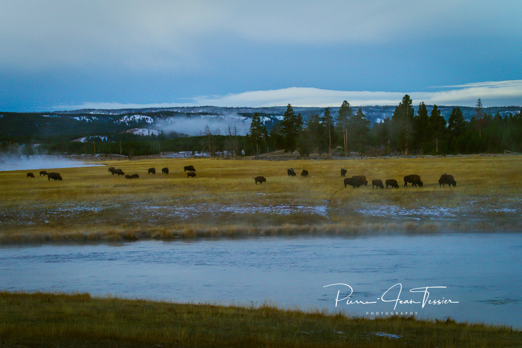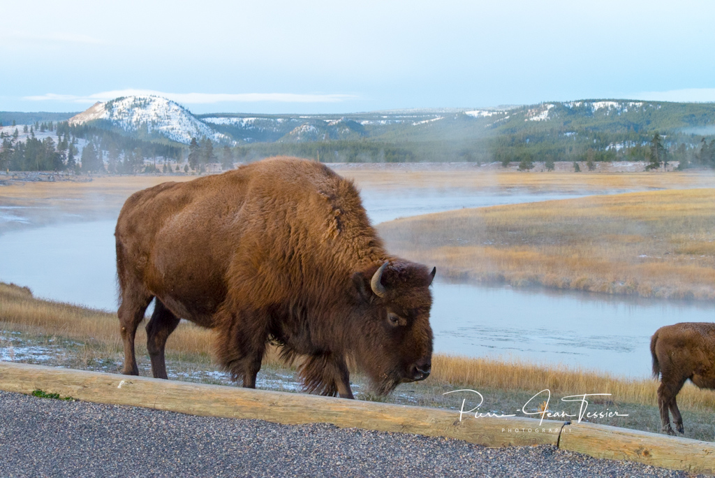 On réalise qu’on a pas mal fait ce qui était accessible au parc. Pas beaucoup de traffic sur les routes ce matin. Les animaux se font rares également à l’exception des bisons qui se retrouvent à plusieurs endroits dans le parc.