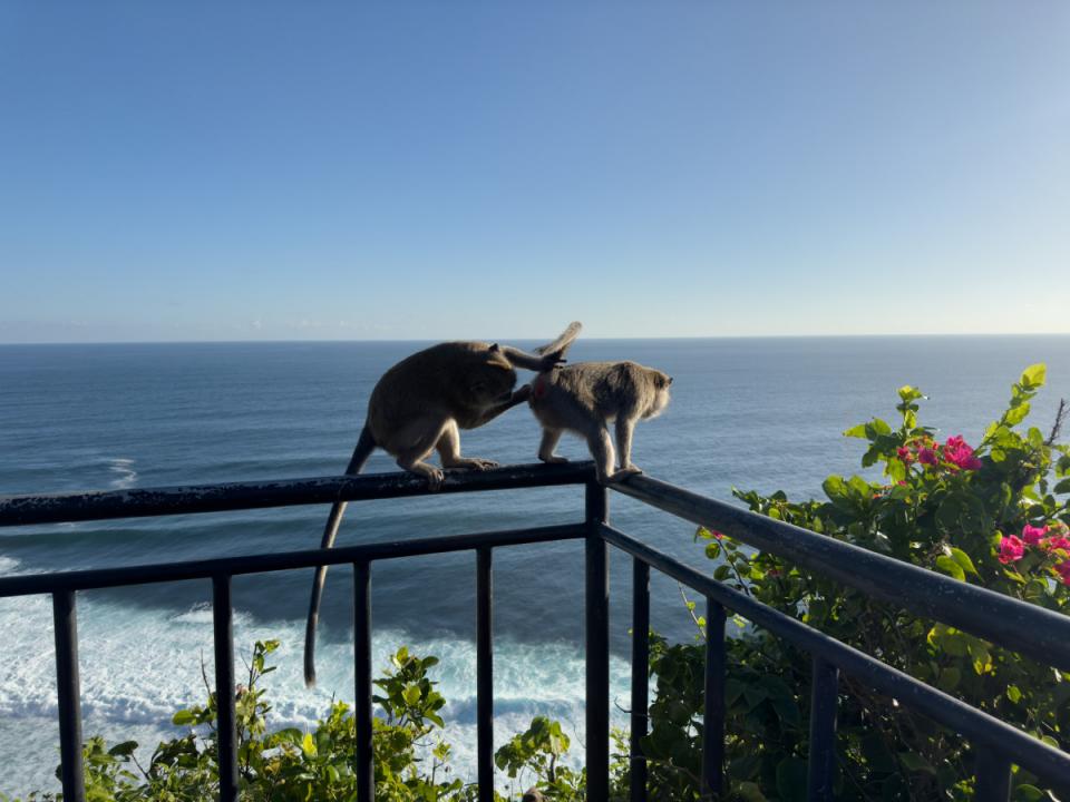 La vue en bordure de mer est tout simplement magnifique. J’ai même réussi à capteur un moment d’intimité entre 2 singes…fallait être vite car ça duré 5 secondes. On lève la queue, on sent si la madame a pris sa douche 🚿 et voilà le tour est joué 😉🤣🤣.