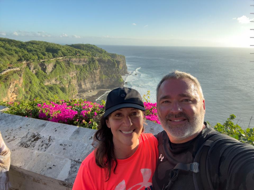 Alors qu’on quitte la plage en milieu d’après-midi, les autobus commencent à affluer, des centaines de personnes débarquent sur la plage…finalement notre timing était parfait. On reprend alors la route vers le temple Unumatu. Encore une fois, le trafic est assez important. On arrive sur le site, notre guide nous averti de faire attention aux singes. Ces derniers sont très rapides et surnois et volent nos téléphones, caméras, lunettes, chapeau. Étant donné qu’il s’agit d’un temple, on doit porter une robe….inquiétez-vous pas je vous annonce pas le coming out de moi et Marc-Antoine 🤣🤣.