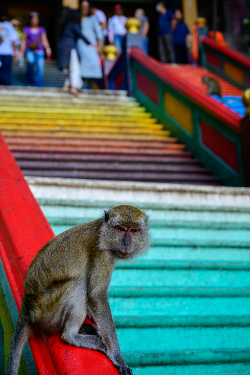 L’endroit est assez impressionnant. Certains Hindous montent les 272 marches sur les genous. On en a vu une, je sais pas ce qu’elle voulait se faire pardonner mais 272 marches sur les genoux sur du béton sans protection sur les genoux…j’imagine que sa faute devait être sérieuse 😒…mais on est pas resté pour voir si elle les a toutes montées!