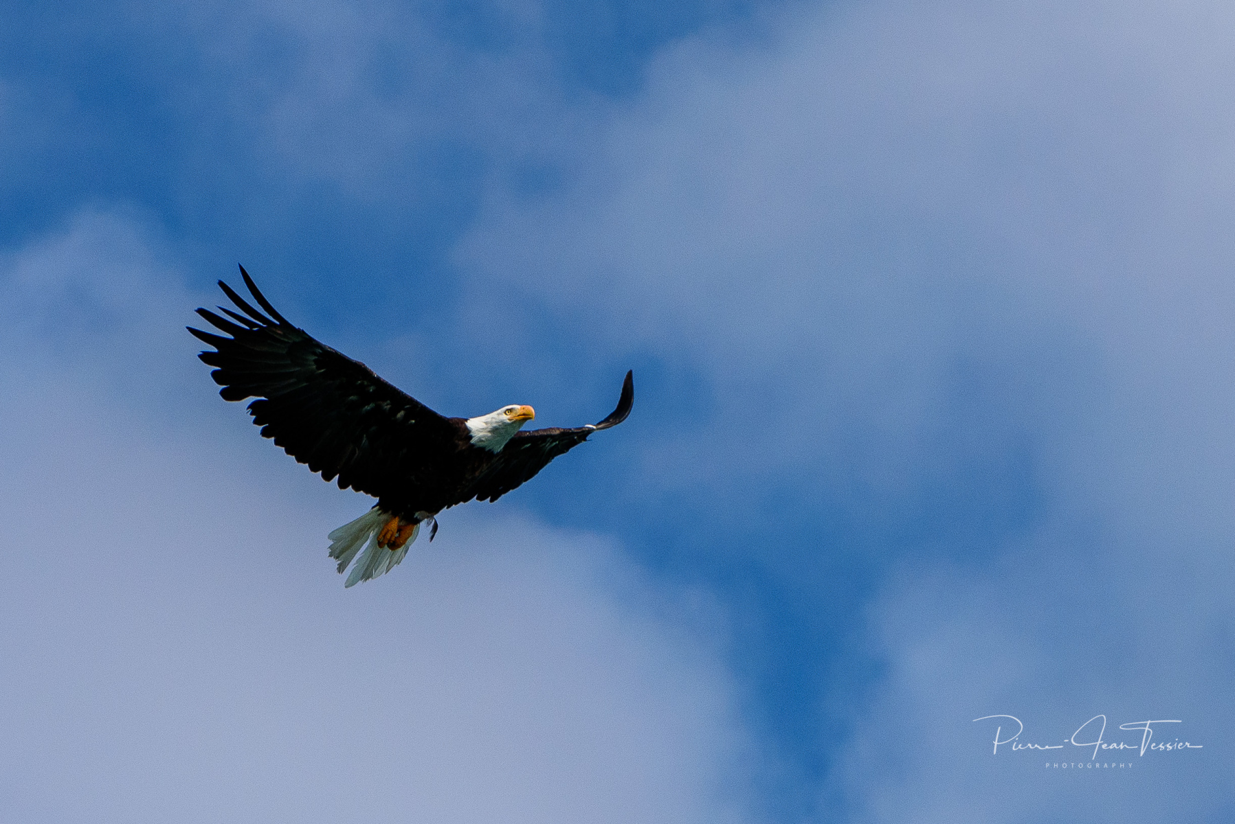 J’ai même réussi à prendre un aigle en photo en plein vol par le hublot du bateau en mouvement.