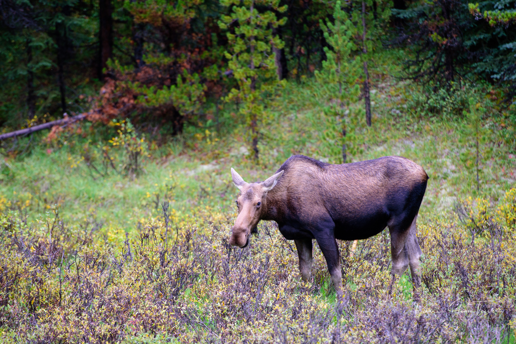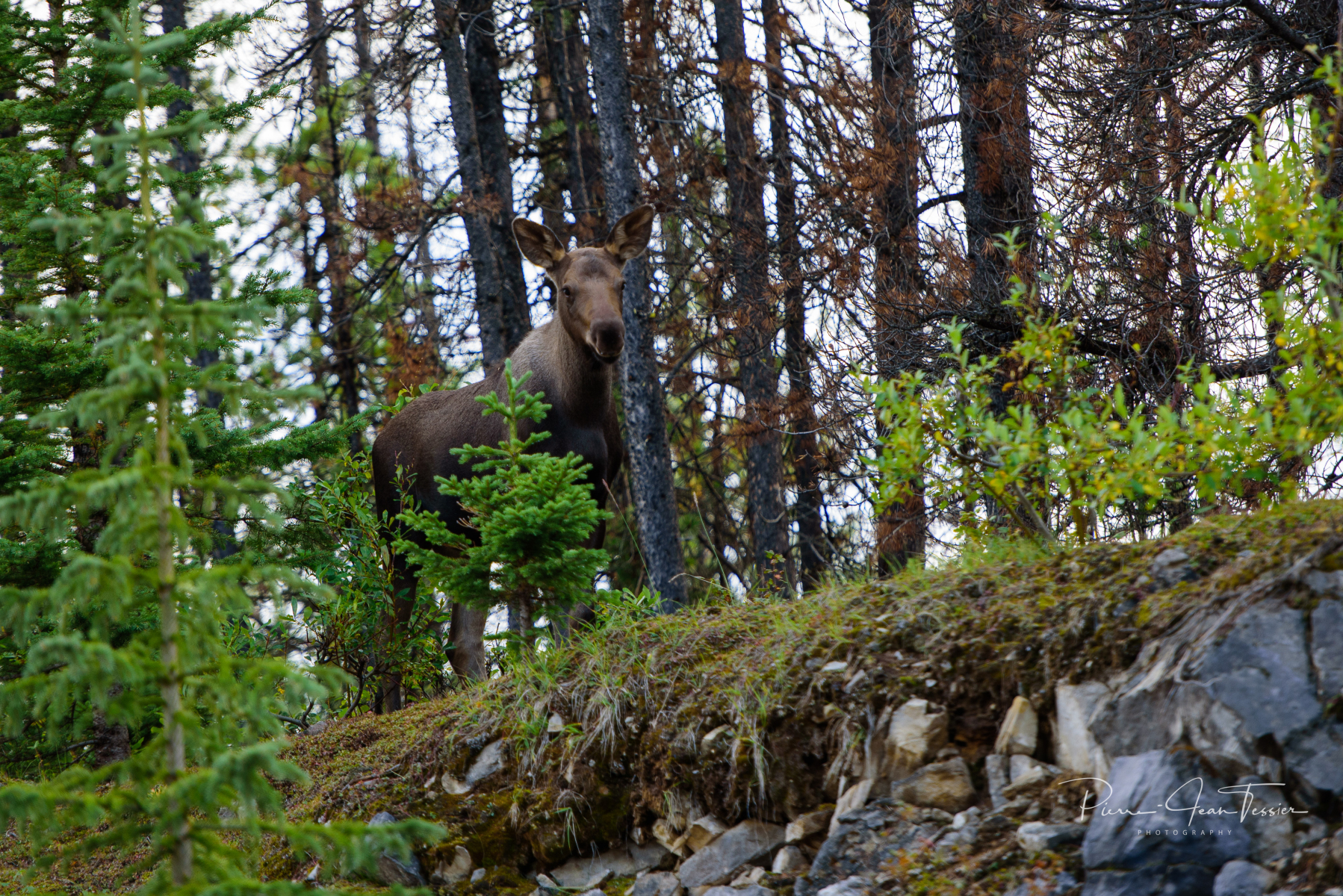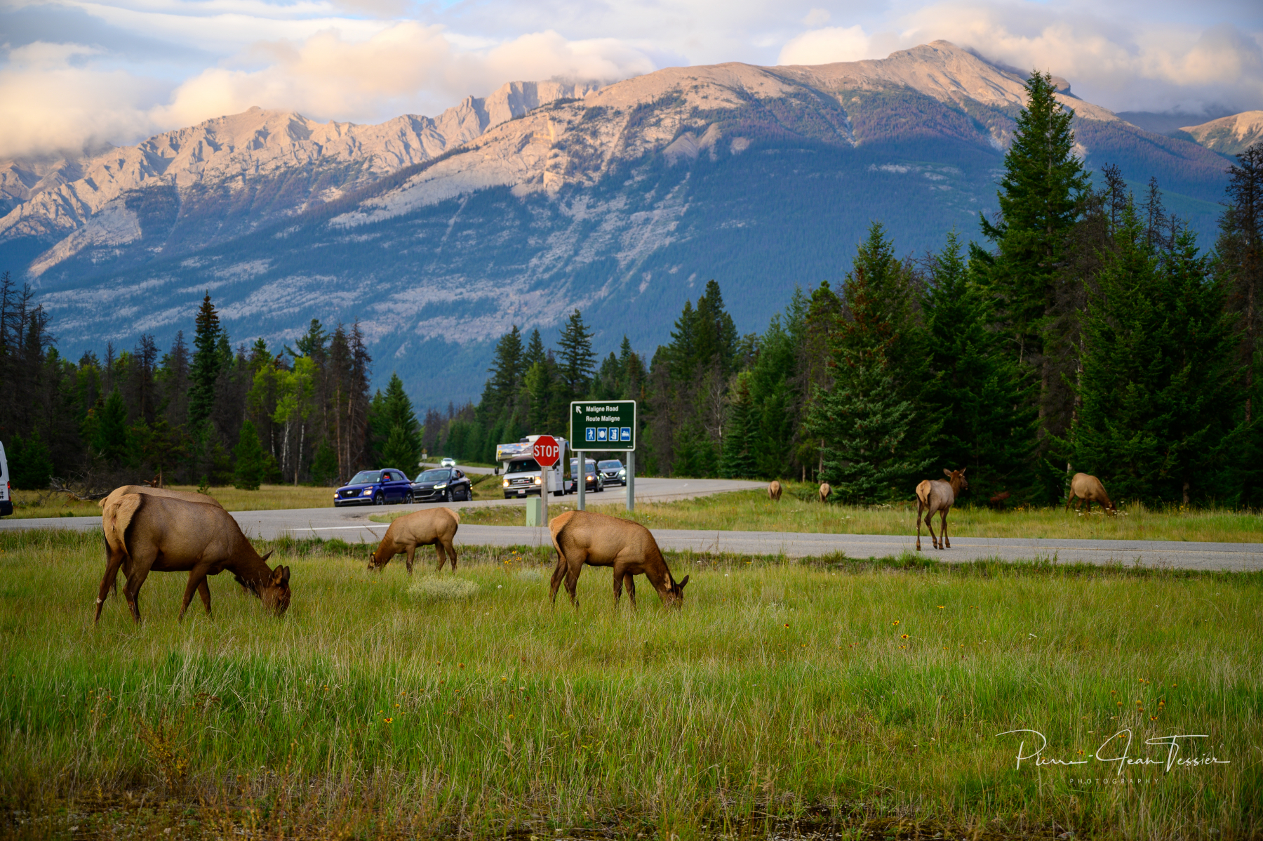 On décide ensuite de revenir vers Jasper vers 18h30 afin de pouvoir voir des animaux en bordure de route qui viennent se nourrir en fin de soirée. On a été gâté, orignaux, chevreuil. Wapiti étaient au rendez-vous.