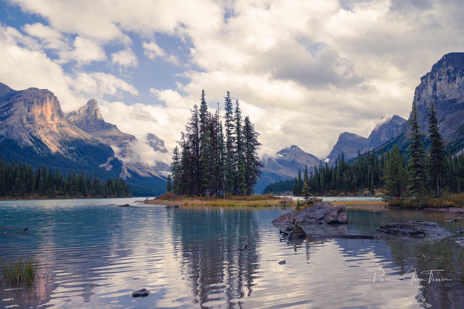 On revient dîner en ville alors qu’il pleut encore. On décide d’aller faire la croisière sur le lac Maligne afin d’aller poser l’île nommée Spirit Islands. Le coût est de 87$ pour une croisière de 1h30.
