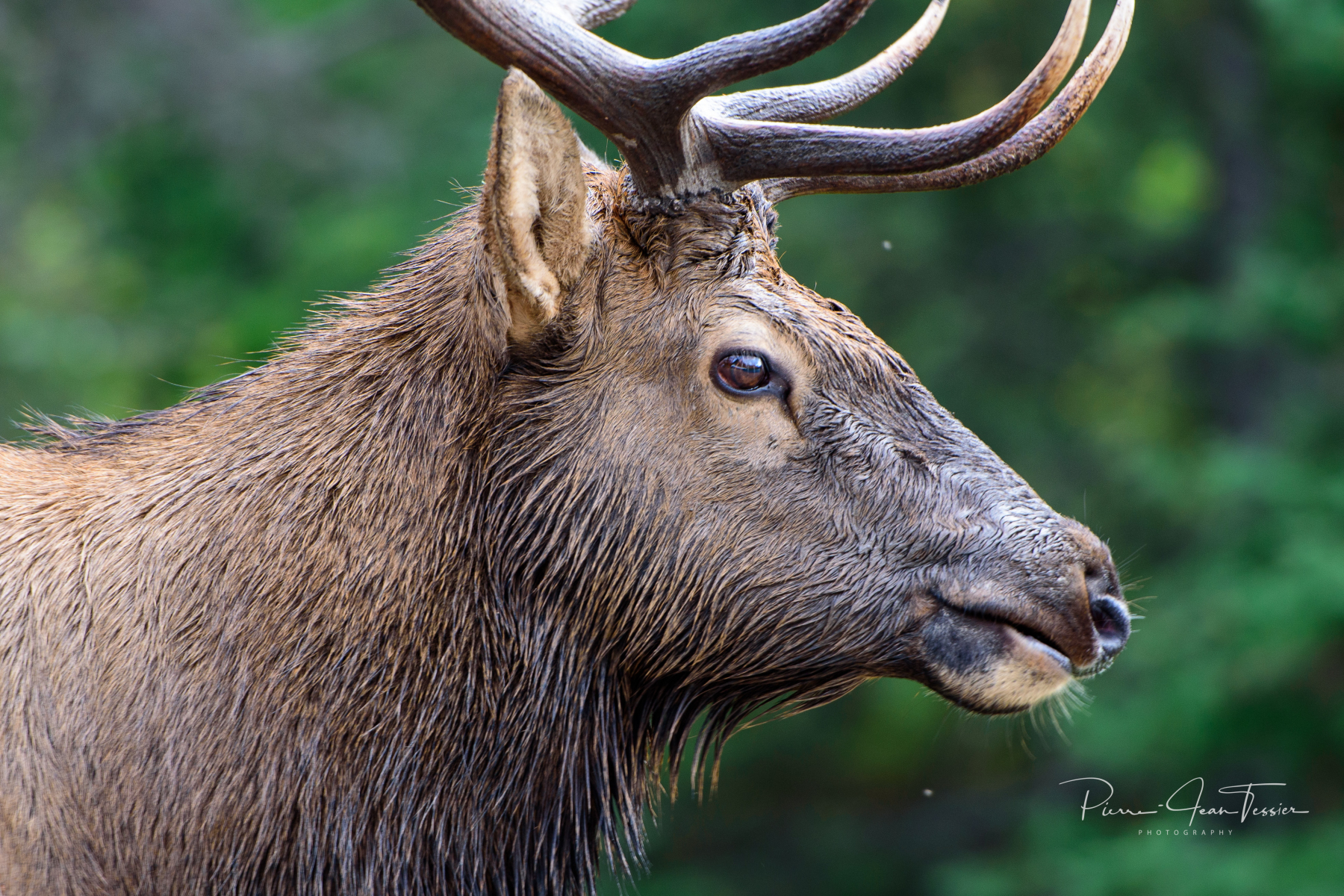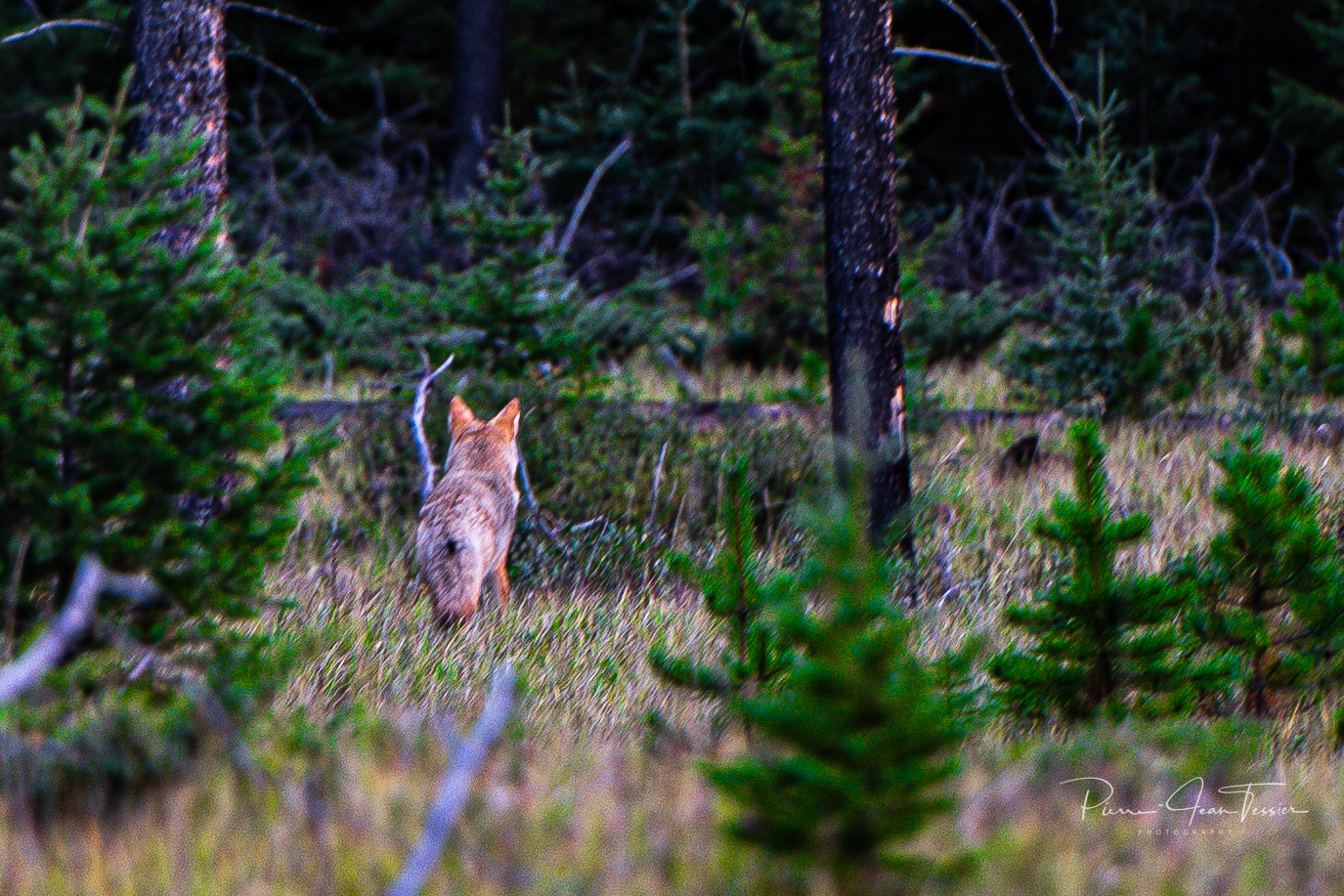 On a fait beaucoup de kilomètrage aujourd’hui mais sans réussir à prendre plusieurs photographies. On décide donc de revenir dans le secteur du Lac Maligne où on voit le plus d’animaux en fin de soirée. On a donc été capable de photographier ours noir, coyote, Wapiti mâle et femelle et le veau. On a s’est même fait charger par un gros buck Wapiti qui était à +/- 3 pieds de notre auto, j’ai juste eu le temps de mettre le gaz dans le fond pour éviter qu’il nous emboutisse la porte côté conducteur….on l’a pas vu venir celui-là!