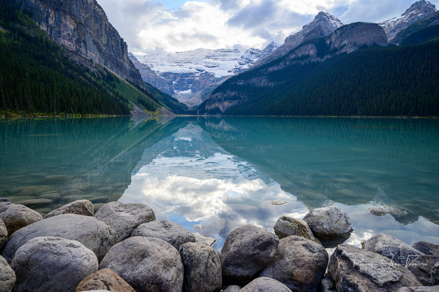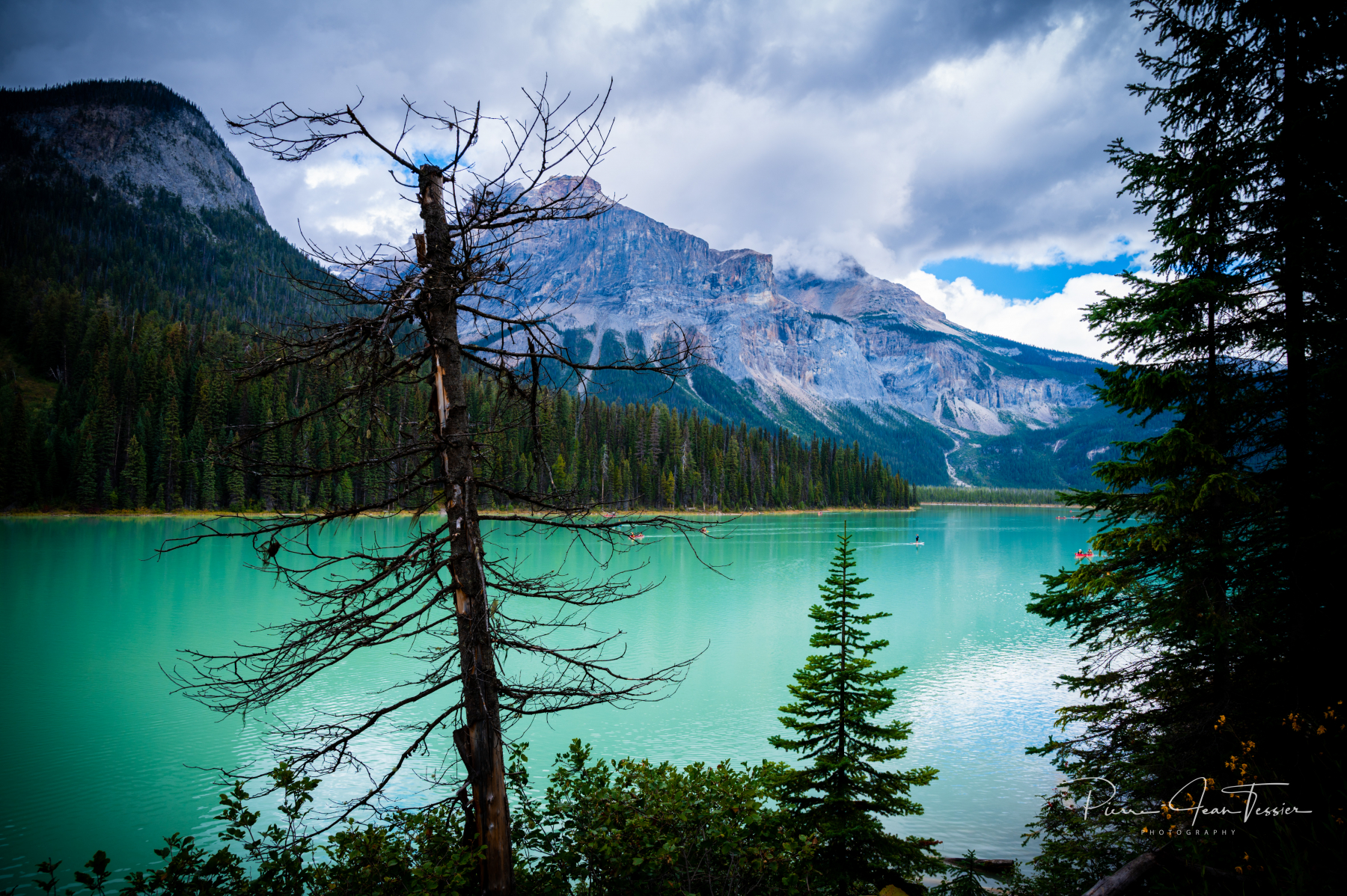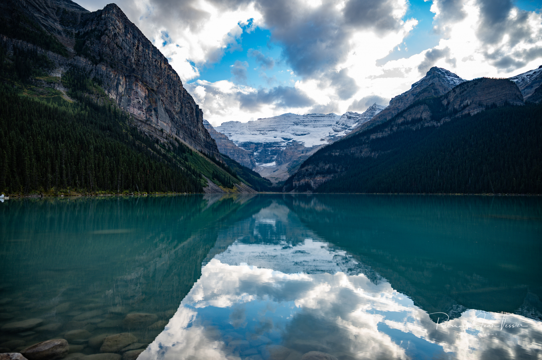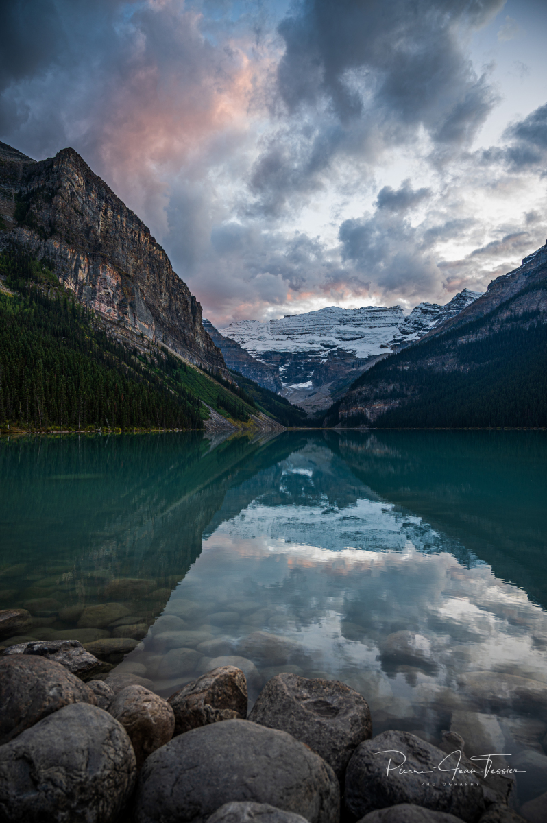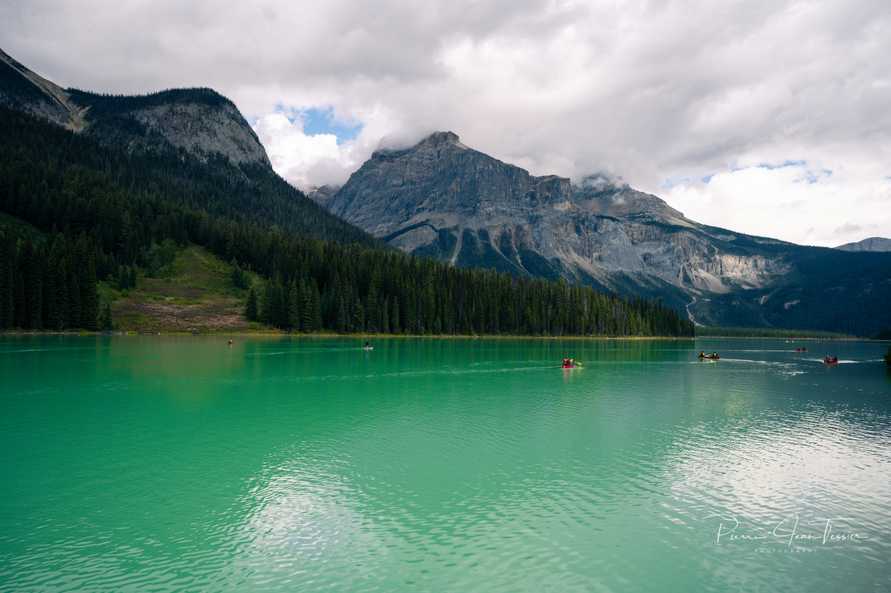 On fait notre check-in et on soupe à l’hôtel avant d’aller s’installer aux abords du lac Louise pour un coucher de soleil 🌅. Il est 18h00 et le soleil se couche à 20h24, donc si vous faites le calcul…un petit 2h30 à attendre assis sur le quai afin que personne ne se mette devant nous pour nos photos. Devinez quoi….encore une fois les nuages apparaissent et pas de coucher de soleil pour nous……On s’est gelé le cul pour pas grand chose. Ça nous a au moins permis de rencontrer un retraité de l’Ohio qui a la même passion que nous pour la photo avec un équipement similaire à nous. On retourne alors bredouille à la chambre. Au menu demain matin, levée du corps à 4h30 car on a réservé un shuttle pour un lever de soleil au lac Moraine, l’endroit le plus photographié au monde. Depuis l’an passé, on ne peut plus se rendre en auto à ce lac, seulement en autobus ou en transport spécialisé.